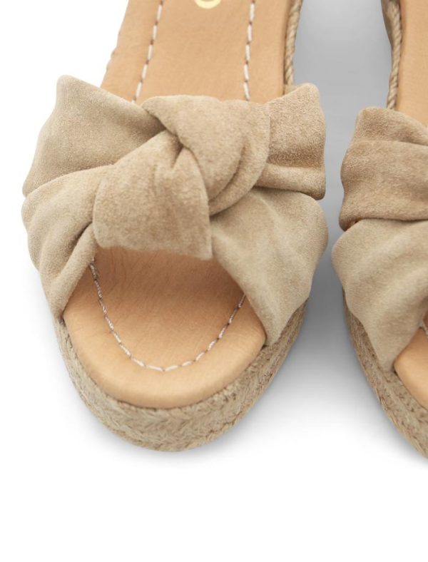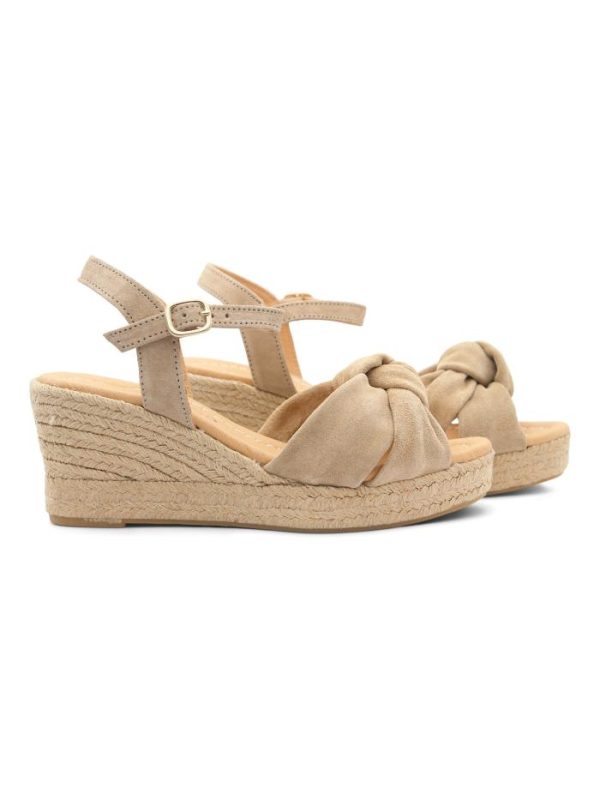Alpargata cuña media más bonita en color visón, forrada en piel y con planta interior de piel para una pisada suave y duradera. Fabricación artesanal 100% española, cuidando cada detalle. Un modelo especialmente pensado para quienes buscan una alpargata elegante, muy cómoda y con una altura media perfecta para el día a día.