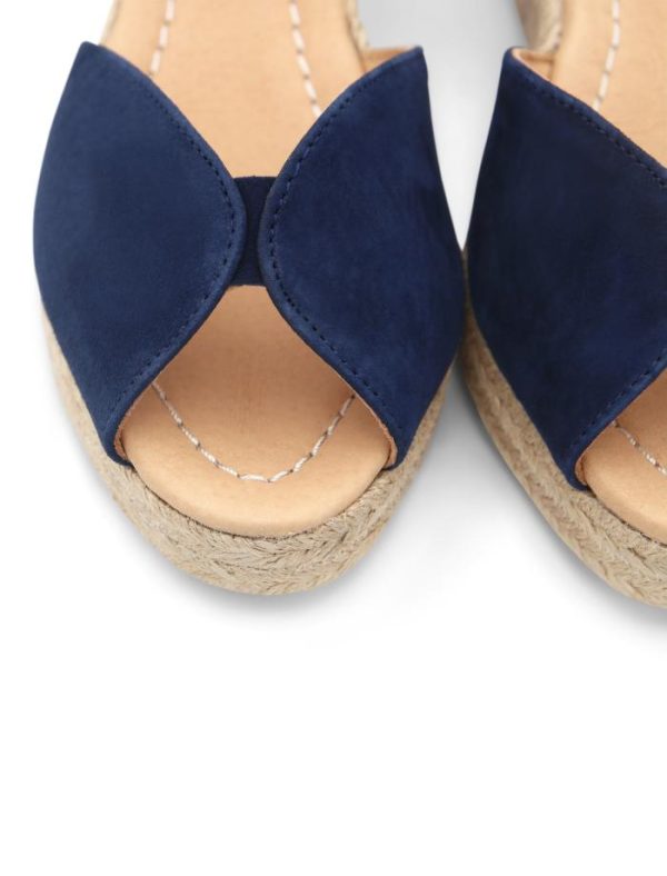 Alpargata de cuña baja Ideal en color marino, forrada en piel y con planta interior también de piel. Su confección artesanal en España garantiza calidad y mimo en cada detalle. Ideal para looks veraniegos con pantalones claros, vestidos de lino o faldas vaporosas.