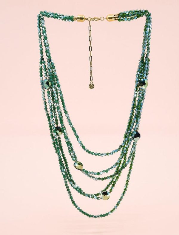 Collar de cuentas de cristal con cierre, es ligero y lleno de luminosidad.