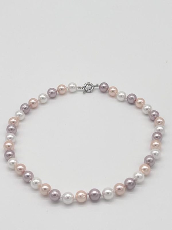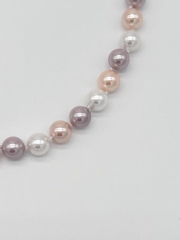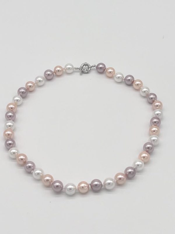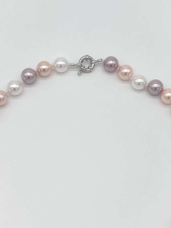 Collar de madreperla en colores rosa, blanco y grisaceo, un toque de luz perfecto para cualquier look, tiene cierre metálico