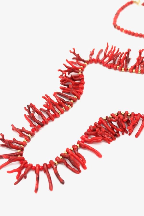 El Collar Rama Coral Coral es una pieza llamativa que aporta un toque marino y vibrante a cualquier conjunto. Confeccionado en pasta con un diseño que emula ramas de coral y con cierre en color oro. Ideal para looks veraniegos y eventos especiales.