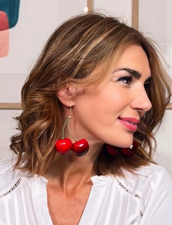 Pendientes en forma de cereza tintados en laca , no pesan y son muy favorecedores, cierre de gancho