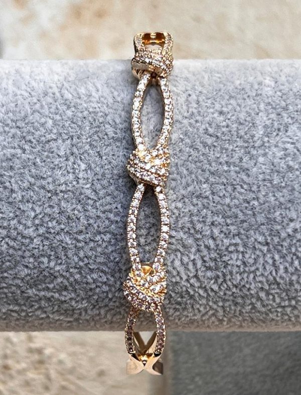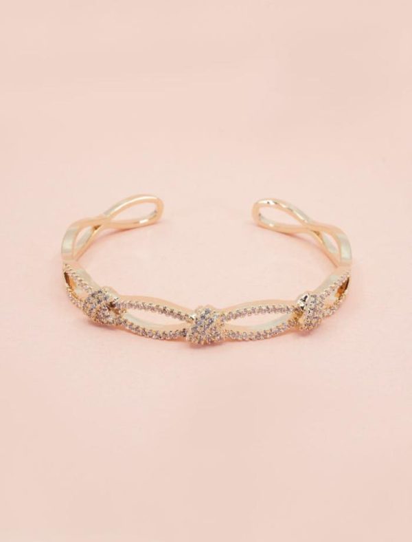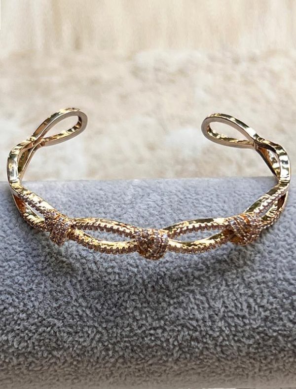 Brazalete de latón y circonitas flexible, uno de nuestros brazaletes más icónicos que favorece y nunca pasa, tiene unas circonitas con un brillo espectacular