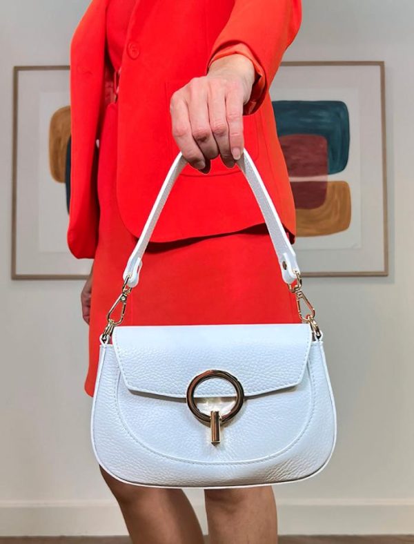 Este bolso de piel elegante y con estilo es perfecto para cualquier ocasión. Su cierre dorado le da un toque de sofisticación y seguridad. Confeccionado con materiales de alta calidad, es duradero y resistente. ¡Complementa tu look con este bolso , es prefecto para cualquier momento