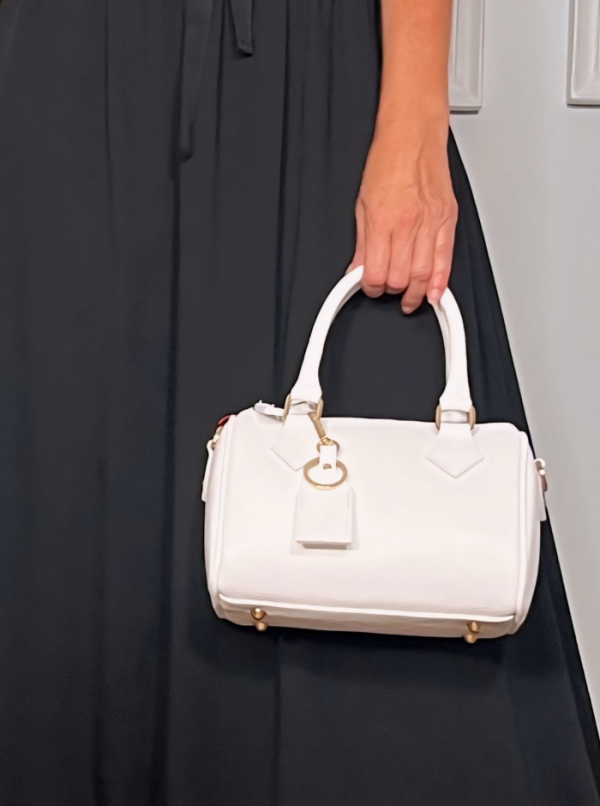 El bolso de mano Soy chic es perfecto para animar cualquier look, muy cuqui, da ese toque hiperfemenino y muy preppy a cualquier look. No pesa, tiene cremallera y un asa larga de piel suplementaria por si quieres llevarlo colgado.