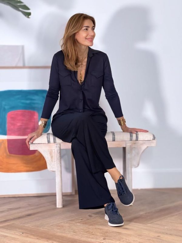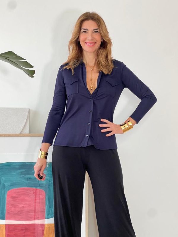 CAMISAS Y BLUSAS MUJER | Nuria Cobo Camisa De Viscosa Marino – Elegancia Y Confort