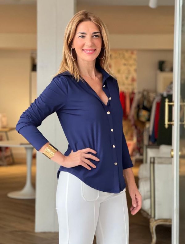 CAMISAS Y BLUSAS MUJER | Nuria Cobo Camisa De Viscosa Solo Botones Marino