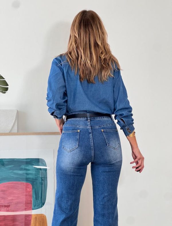 La Camisa Vaquera Distinta Jeans es suave y de algodón con un tejido ligero y que favorece muchísimo gracias a su cuello caja y al escote con botones. Su color azul es lo más en jeans, pues da un subidón a nuestra cara. Es perfecta tanto por fuera con cinturón como dentro del pantalón.
