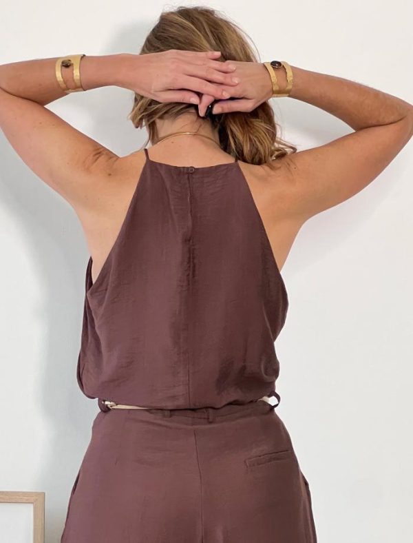 Cuerpo rojo fluido muy suave ya que es viscosa en un 80% , lleva tirante y se abrocha en la espalda con un botón.