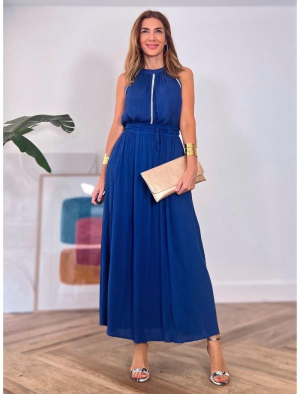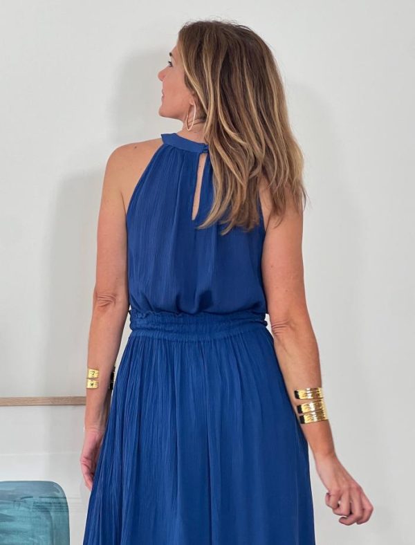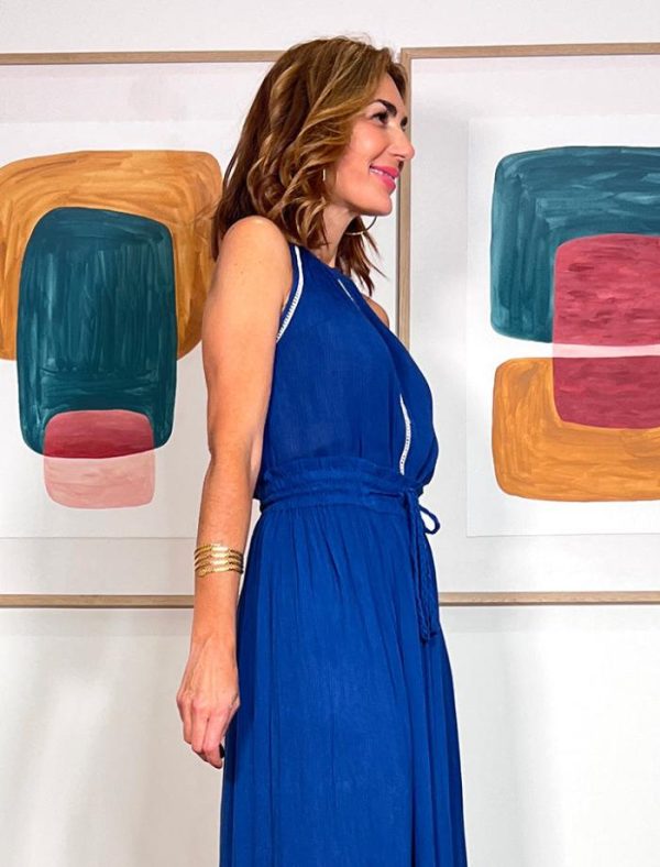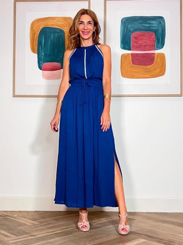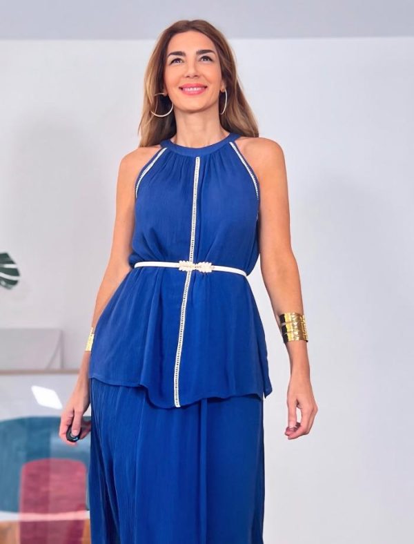 Este Top Azul Muy Bonito es una prenda versátil que combina sencillez y elegancia. De tejido suave y ligero, que hace que su diseño fluido y con cuello halter se adapte con estilo a cualquier ocasión. Puedes combinarlo fácilmente con pantalones o faldas tanto en looks casual como más sofisticados.