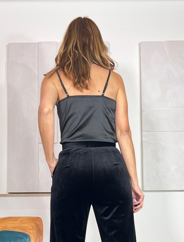Este top lencero en color negro es una de esas prendas que siempre funcionan. Con un tejido suave, caída fluida y un escote decorado con encaje delicado, aporta feminidad y estilo.