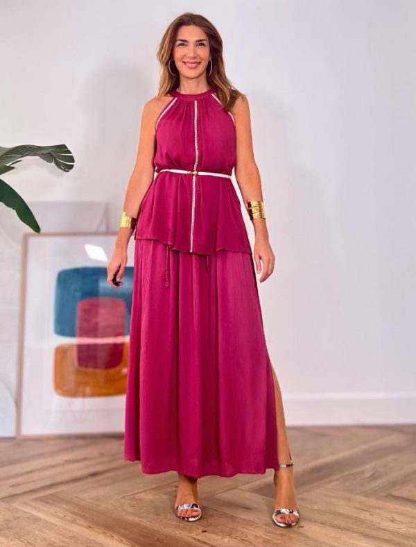 Este Top Rosé Muy Bonito es una prenda versátil que combina sencillez y elegancia. De tejido suave y ligero, que hace que su diseño fluido y con cuello halter se adapte con estilo a cualquier ocasión. Puedes combinarlo fácilmente con pantalones o faldas tanto en looks casual como más sofisticados.