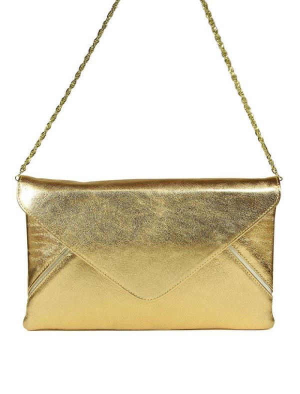 Fabricado con piel y forrado en piel, tiene bolsillo y cadena interior para que te lo puedas colgar. Su cierre es con botón a presión y sus medidas son 25 x 16 cm.