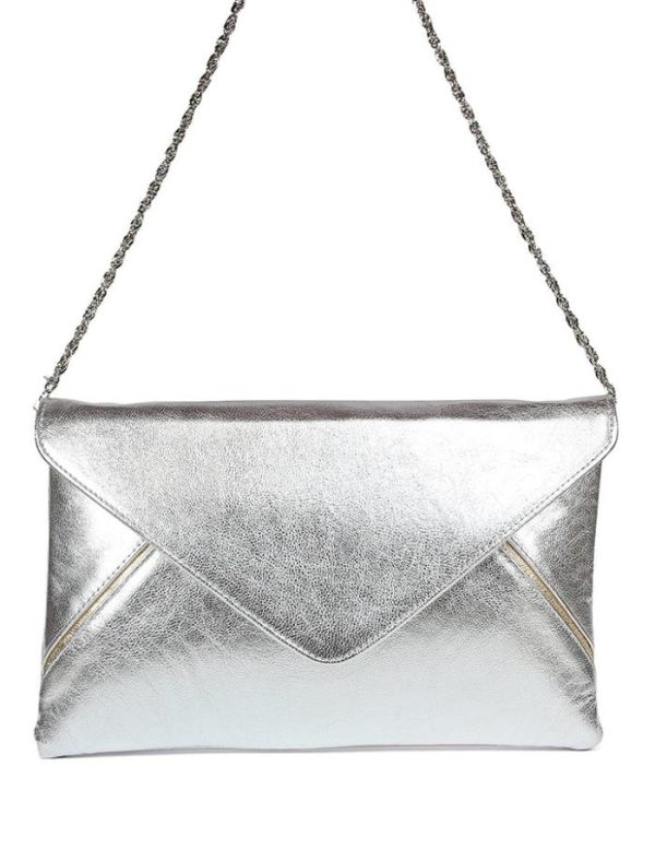 Fabricado con piel y forrado en piel, tiene bolsillo y cadena interior para que te lo puedas colgar. Su cierre es con botón a presión y sus medidas son 25 x 16 cm.