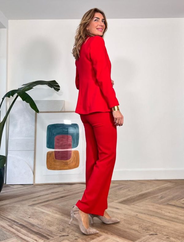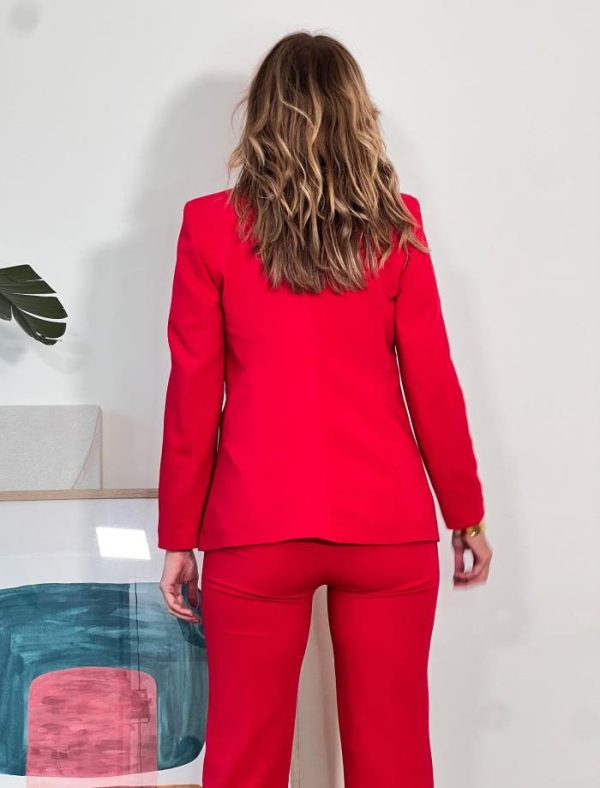Chaqueta Slim Chic Roja transforma cualquier look. Su corte slim entallado, tejido con cuerpo y vibrante color rojo crean una silueta favorecedora, estilizada y con mucha personalidad. Perfecta para dar fuerza a un conjunto neutro. Aconsejamos combinarla con nuestro Pantalón Ideal de bolsillos Rojo.