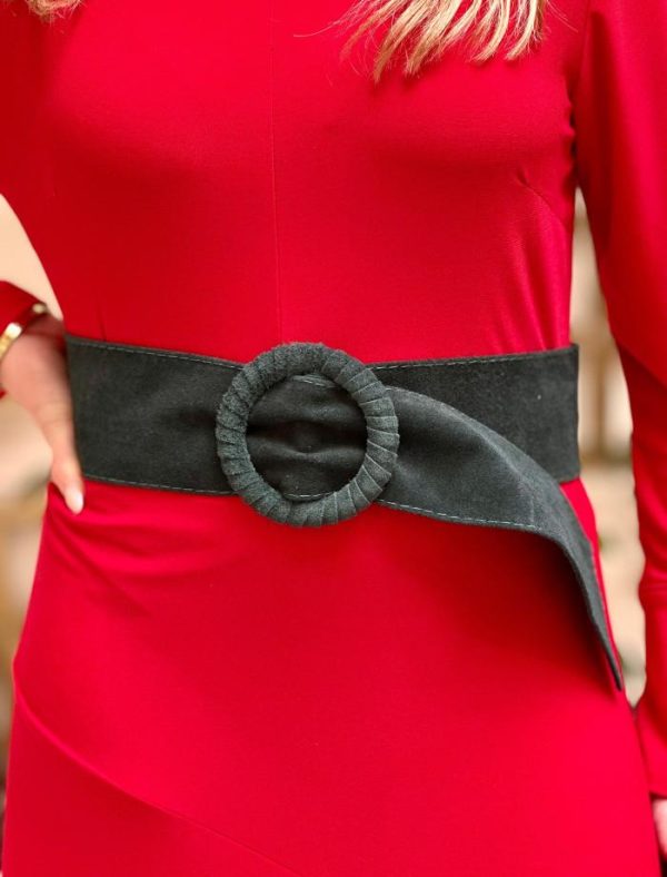 Este Cinturón Básico de piel gris combina elegancia y funcionalidad para elevar cualquier look. Su diseño sobrio con hebilla forrada en el mismo material lo convierte en un complemento versátil, ideal tanto para vestidos de evento como para estilismos del día a día.