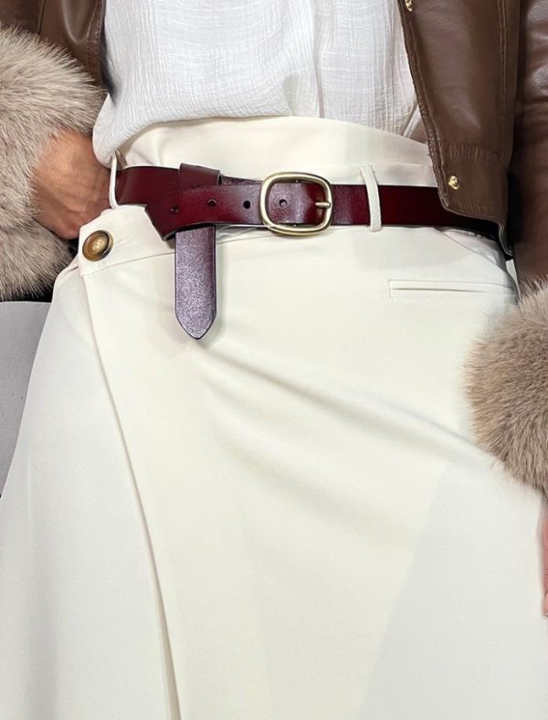 Cinturón de piel color chocolate con hebilla dorada