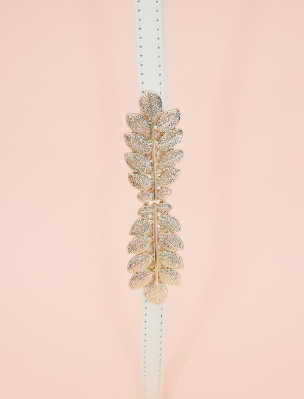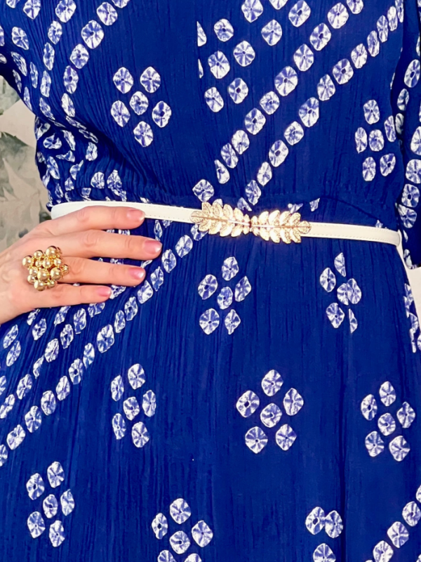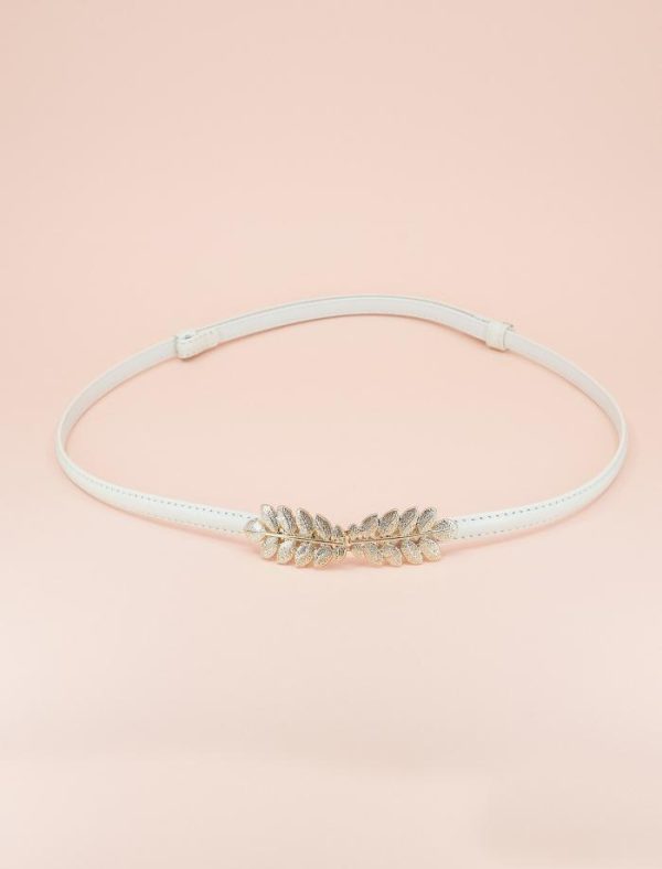 Cinturón Extensible Chic Blanco es el detalle que transforma un look sencillo en algo especial. Confeccionado en piel y rematado con una preciosa hebilla en forma de hoja dorada, es perfecto para ajustar vestidos, marcar la cintura sobre camisas o dar estructura a chaquetas fluidas.