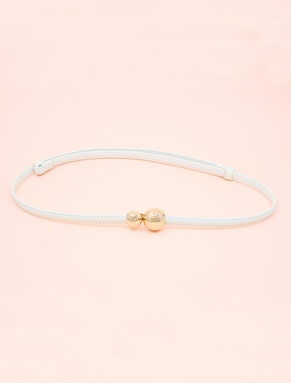 El Cinturón Fino Silverio Blanco es delicado, luminoso y muy versátil. El diseño minimalista en piel blanca se realza con el detalle central de piezas metálicas doradas. Ideal para estilizar vestidos fluidos o marcar la cintura con un toque fresco y elegante.
