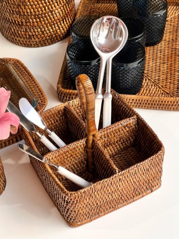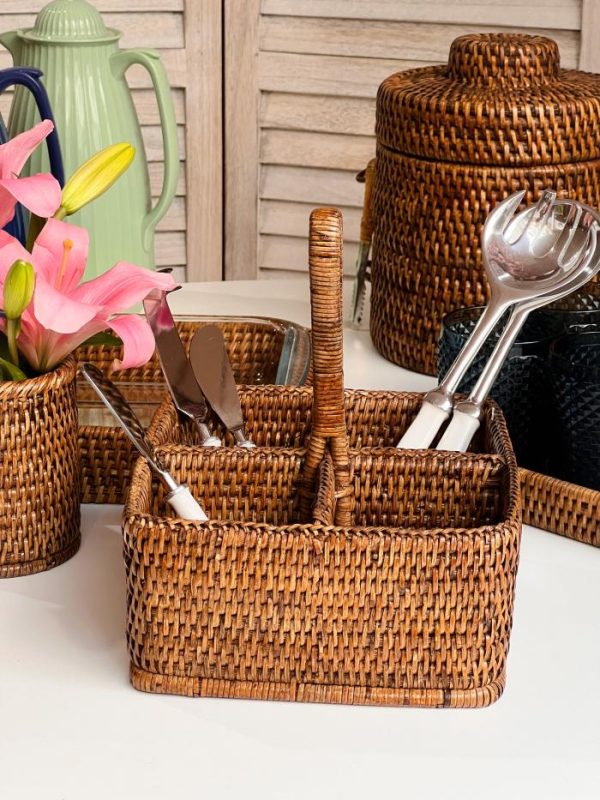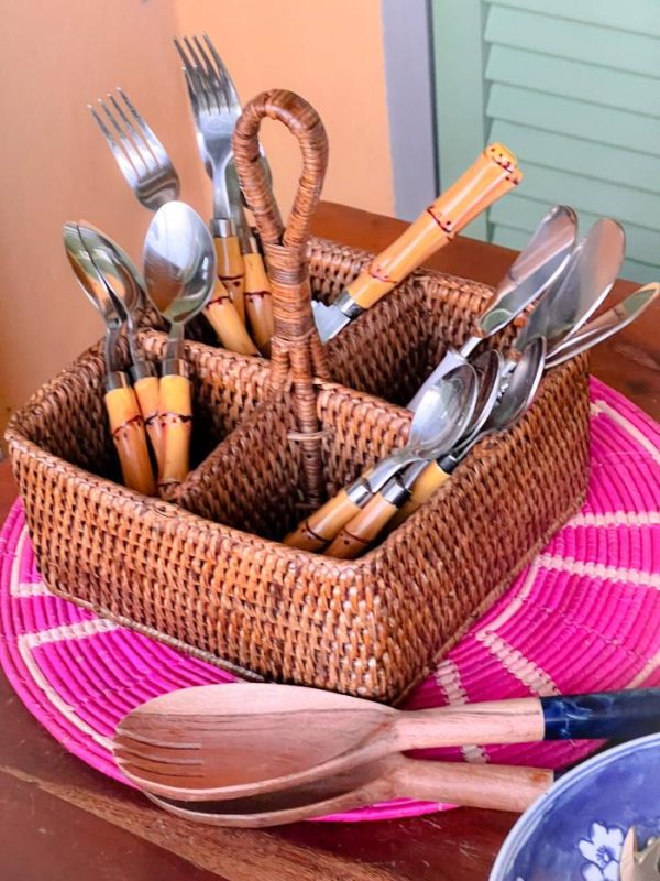 Descubre el encanto natural de nuestro cubertero de rattan, una pieza artesanal que aporta calidez y estilo mediterráneo a tu hogar