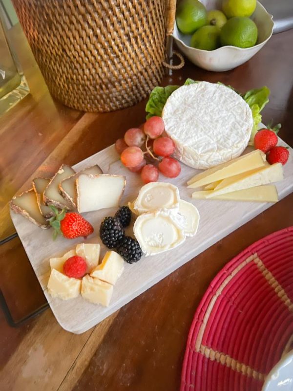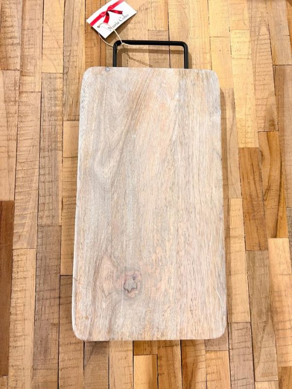 Tabla de madera decapé blanco, con asa en metal oscuro
