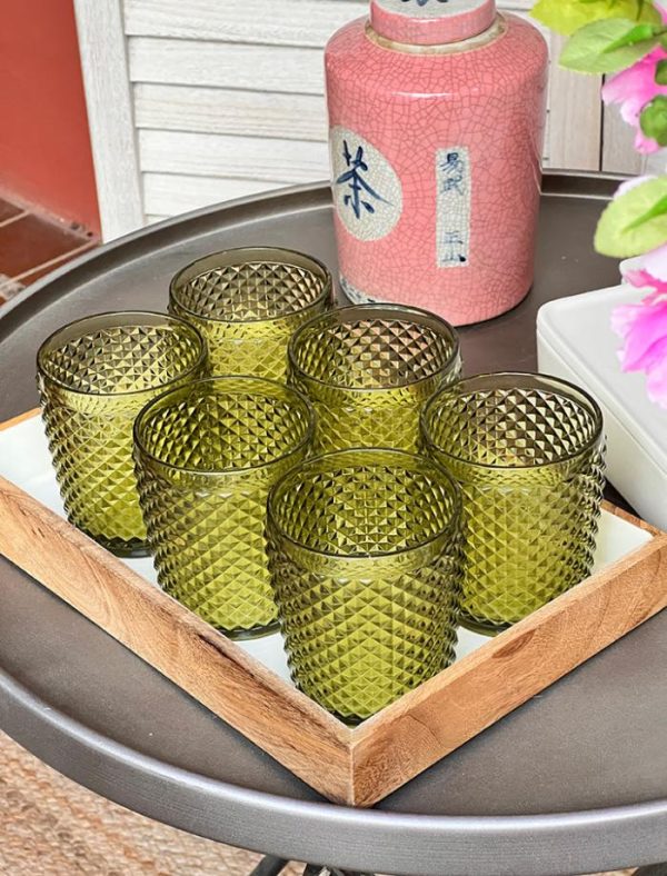 Set de 6 vasos de cristal de picos verdes
