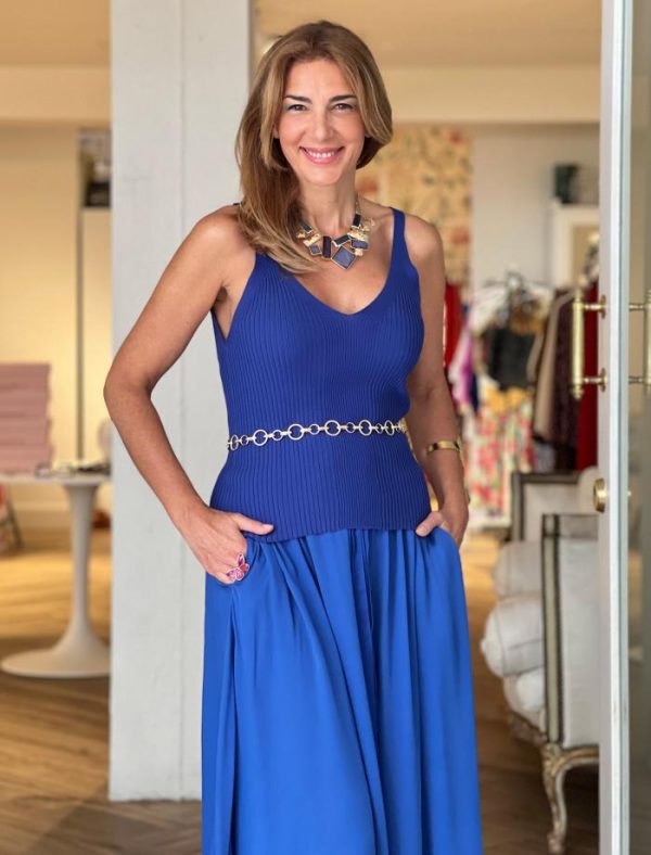 La falda Atmosphere azul destaca por su elegante movimiento y favorecedor vuelo. Perfecta para combinar con blusas, tops o camisas, esta falda añade un toque de sofisticación y color a cualquier look.