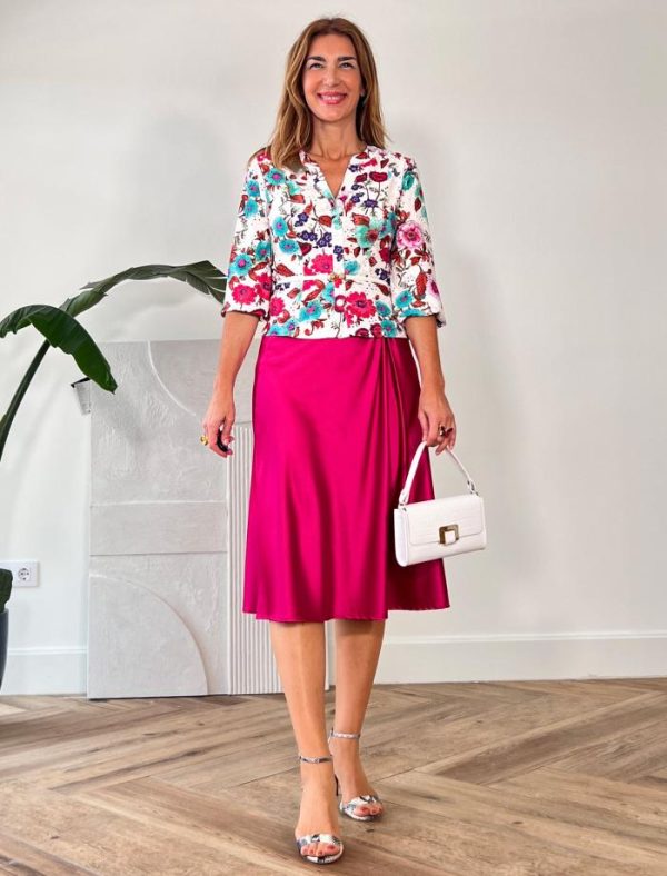 La Falda Fucsia Linda confeccionada en tejido reciclado une estilo y sostenibilidad. Su color vibrante y el tejido con caída favorecen la figura y aportan un movimiento fluido al caminar. Una prenda versátil para dar un toque alegre y sofisticado a tus looks de invitada, combinándola con una blusa elegante. Lleva cremallera.