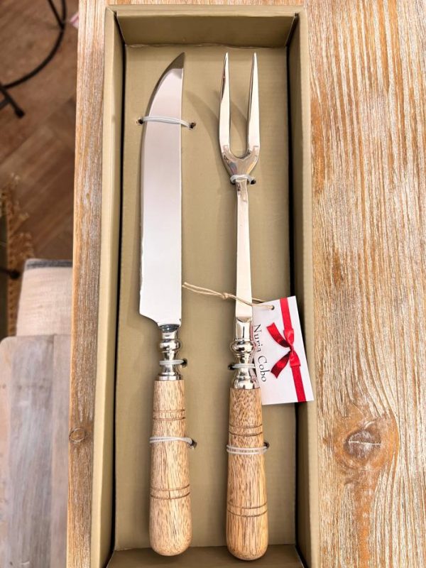 Descubre la elegancia natural de nuestros cubiertos de trinchar, perfectos para tus momentos especiales en familia. Fabricados con mangos de madera que aportan calidez y autenticidad a tu mesa.