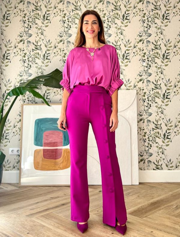 Nuestro pantalón más trendy y que además sienta de maravilla. Recomendamos llevarlo con algo de tacón para destacar su bajo en pata ancha tan favorecedor.