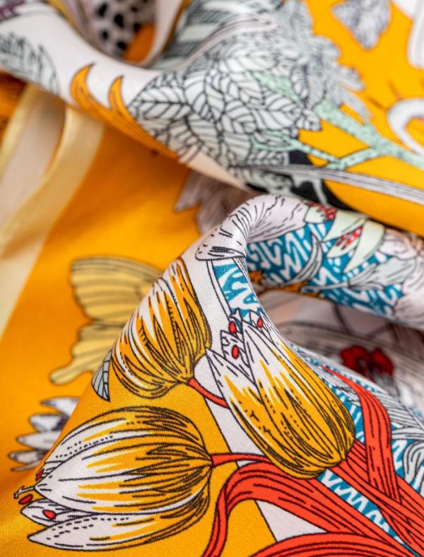 Descubre nuestro exquisito pañuelo de seda, tu compañero perfecto para realzar cualquier look. Ideal para lucir con elegancia en el cuello, como accesorio de pelo o dando un toque sofisticado al asa de tu bolso. Con una seda de calidad superior y un estampado que captura miradas, se convierte en el regalo ideal para ocasiones especiales.