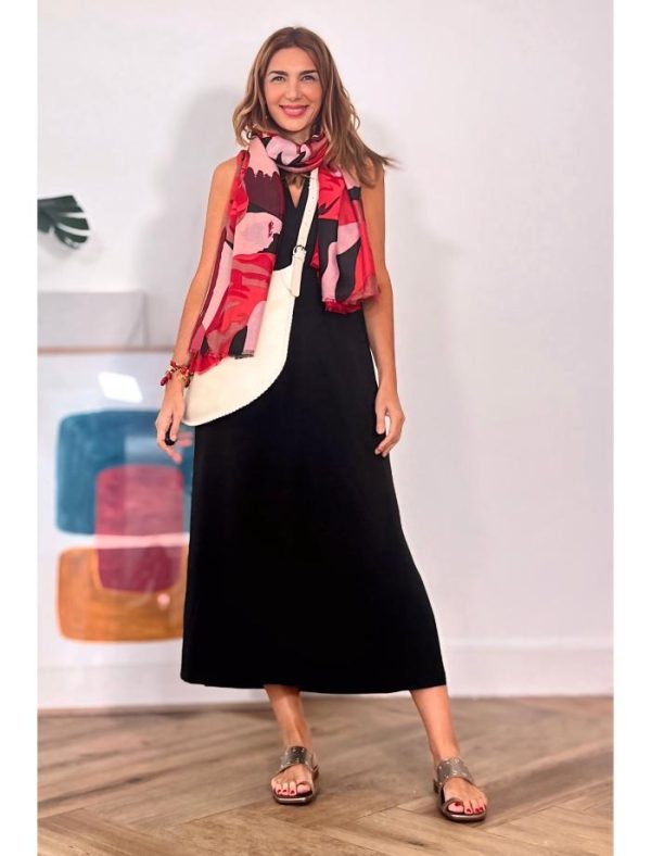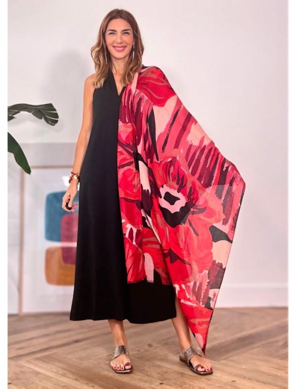 Foulard Soft de Viscosa Cora combina tonos rojos con negro en una tela exquisita que fluye con elegancia y se adapta perfectamente a tu estilo personal. El complemento ideal que realza tu belleza natural y añade ese toque especial que hace única cada ocasión.
