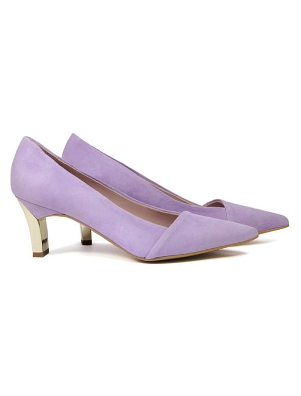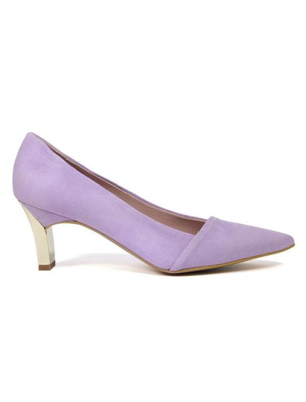 Fabricado con pieles de primera calidad, estos elegantísimos zapatos tienen suela de goma, planta acolchada y un anchito tacón cromado en oro de 6,5 centímetros.