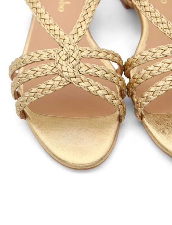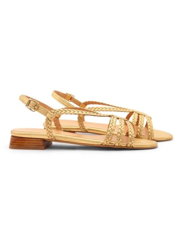 Descubre la sandalia trenzada en oro que se convertirá en tu compañera perfecta para cada ocasión. Un diseño versátil que armoniza con todos tus looks, brindándote ese toque de elegancia y confort que mereces en tu día a día.