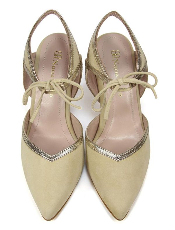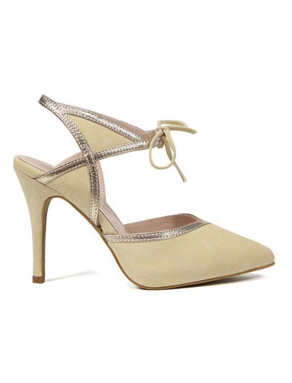 Nuestra sandalia con plataforma interior y máxima comodidad y sujección se llama Laetitia, en un delicioso ante beige con ribetes metalizados , es el modelo perfecto para ir alta,cómoda y combinar con todo.