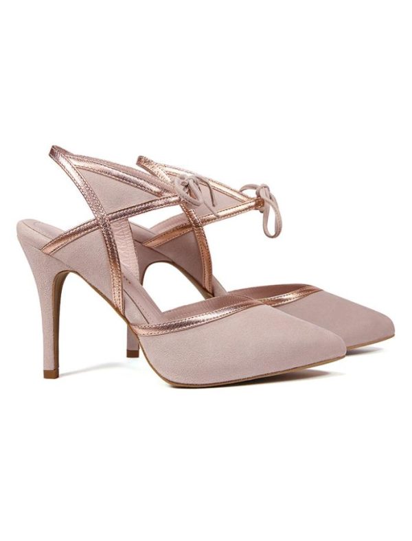 Nuestra sandalia con plataforma interior y máxima comodidad y sujección se llama Laetitia, en un delicioso ante nude con ribetes metalizados , es el modelo perfecto para ir alta,cómoda y combinar con todo.