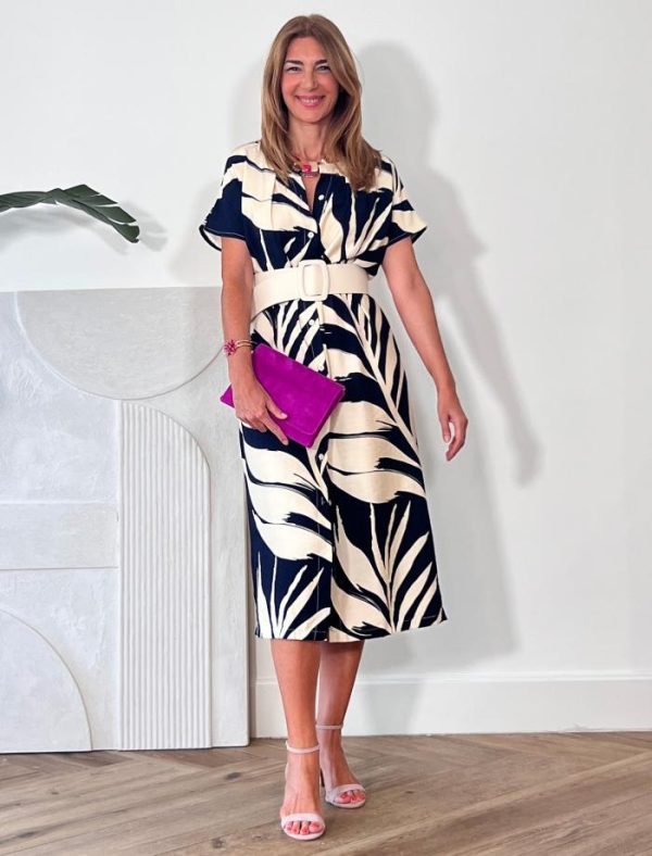 Su corte camisero sienta especialmente bien a diferentes tipos de silueta, y el cinturón permite ajustarlo a tu gusto, marcando la cintura o llevándolo más suelto. Ideal tanto para llevar con alpargatas durante el día como con sandalias para una noche de verano elegante.