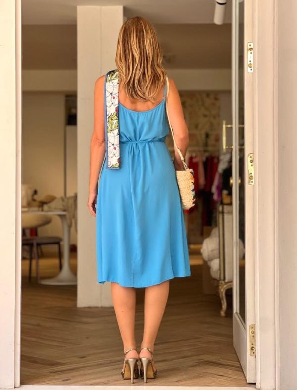 Vestido de Viscosa Para Todo en tono azul, con tirantes finos y tejido fluido que aporta una caída preciosa. Fresco, ligero y muy cómodo, es perfecto para los días cálidos o para llevar con una chaqueta en looks más especiales. El color realza el tono de piel y sienta genial.