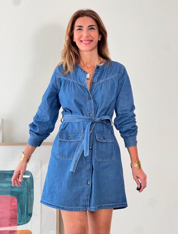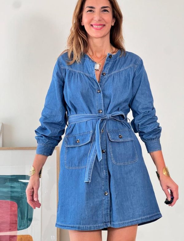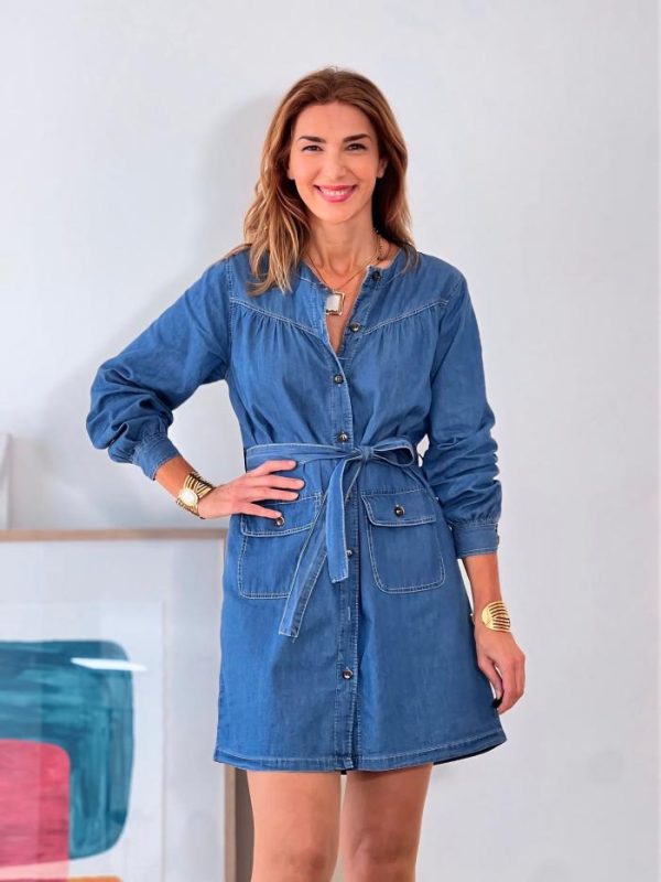 El Vestido Kaftán Vaquero Denim fusiona estilo urbano y elegante. Confeccionado en algodón, ofrece una textura suave y un ajuste cómodo. Es perfecto para un look diario.