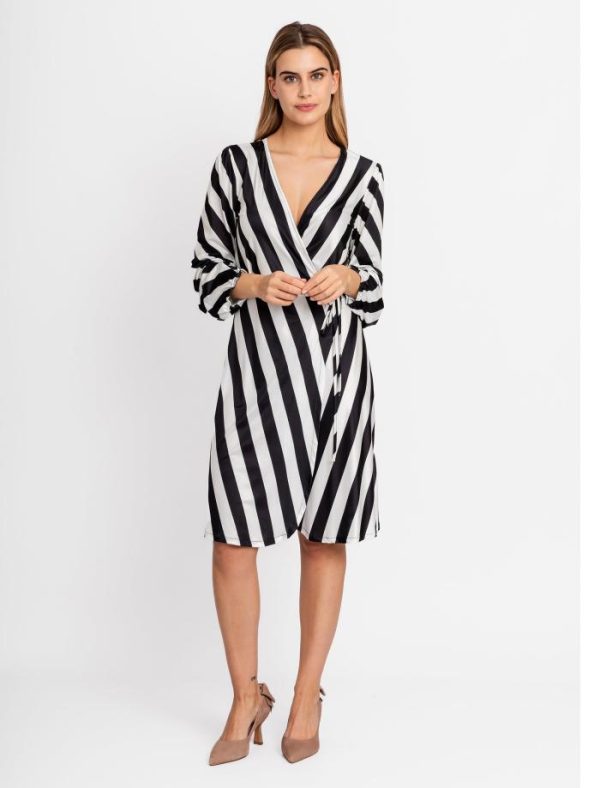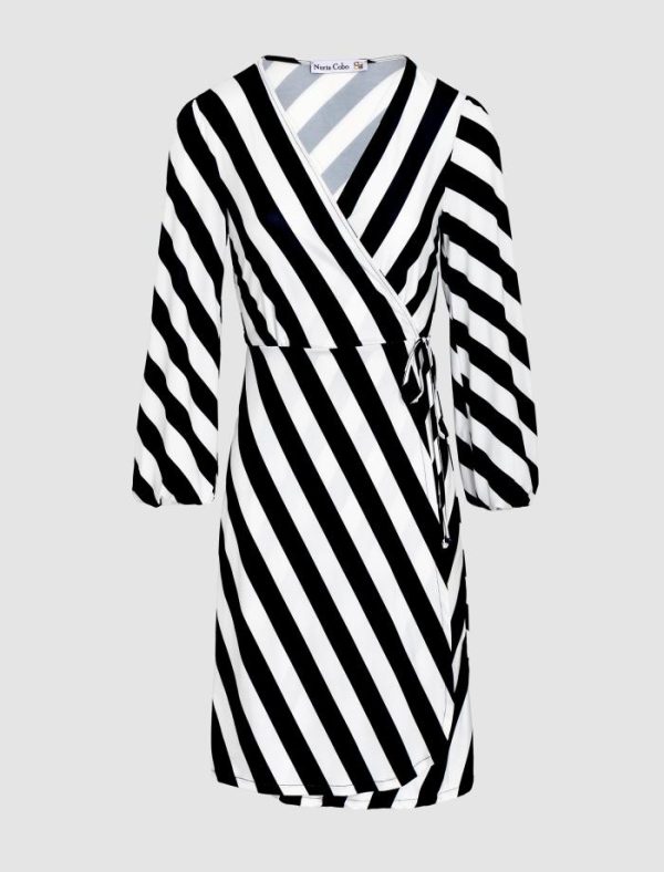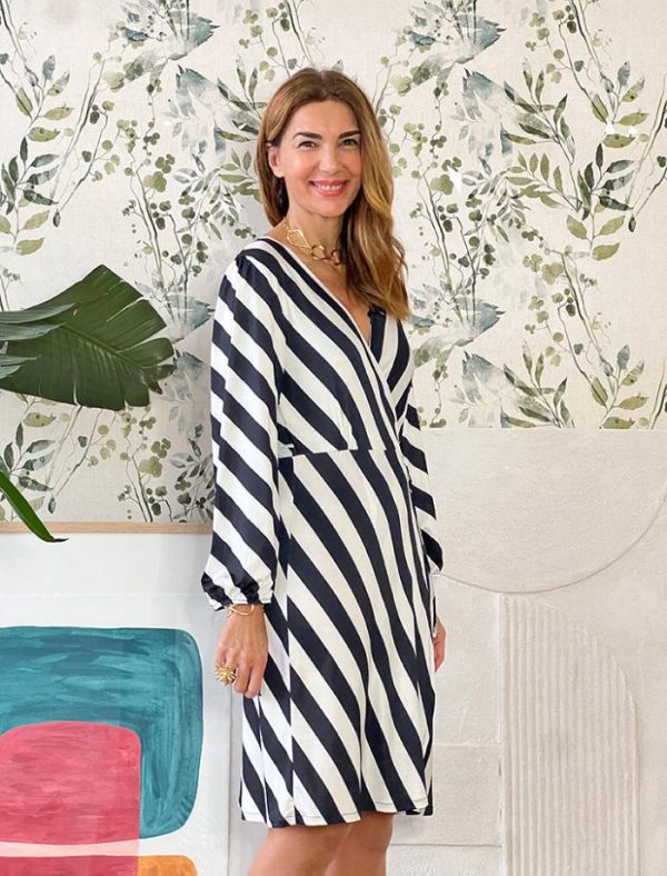 Vestido de punto cruzado en la linea de estampados Lines de la colección Made in Nuria, hecha en serie limitada por talleres artesanales.