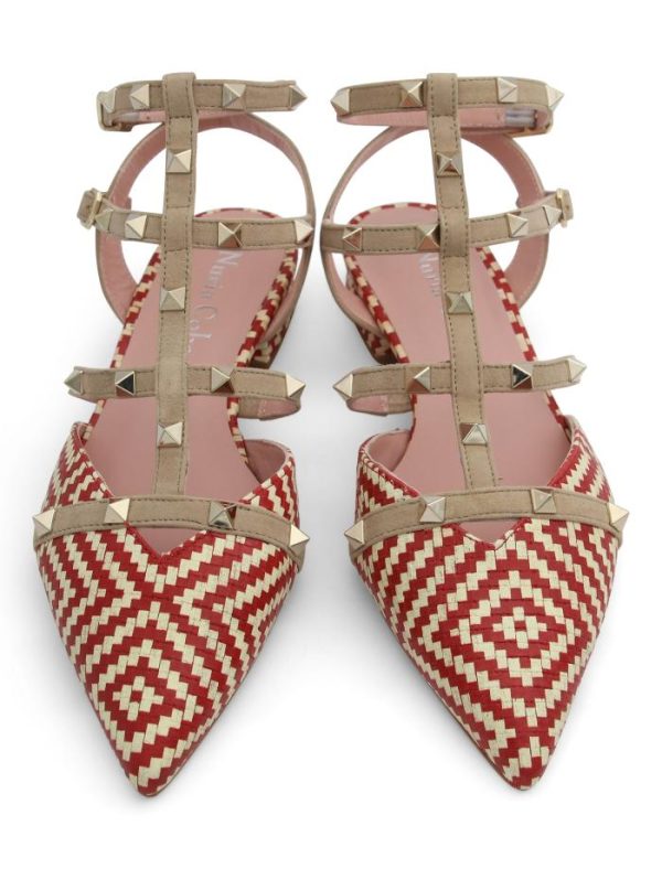 El patrón de esta sandalia es perfecto para abrazar dándole seguridad al caminar y favorecer al máximo.Está fabricada artesanalmente en piel con forro piel y lleva adorno de tachas metálicas a lo largo de la pala.