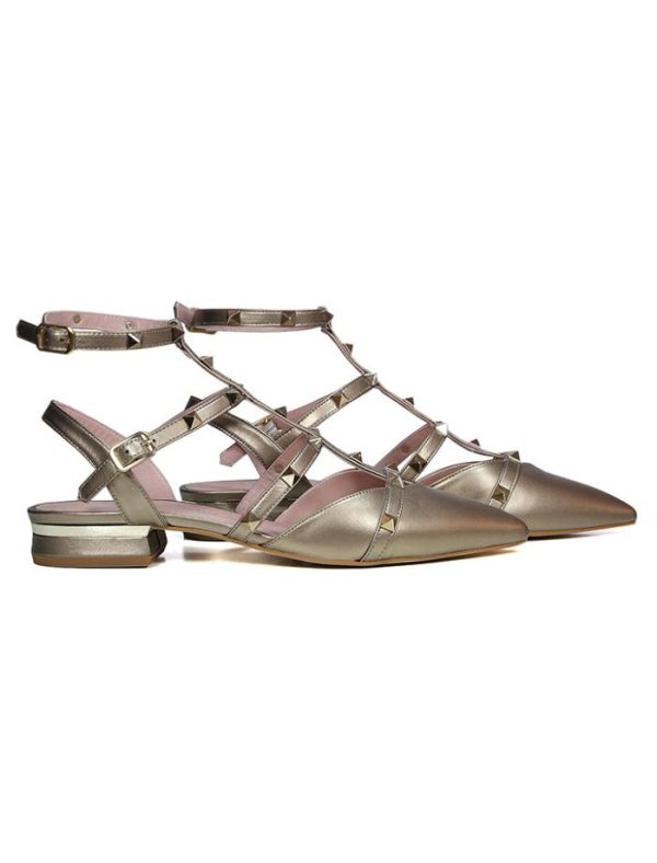 Fabricada con la mejor piel cromada, tiene suela de goma, planta acolchada y un tacón de 2 centímetros. Bien sujeta, mis sandalias Increíbles y sus tachuelas serán las protagonistas allá donde vayas, y si además tienen este color dorado que va con todo… ¡No podemos pedirles más!